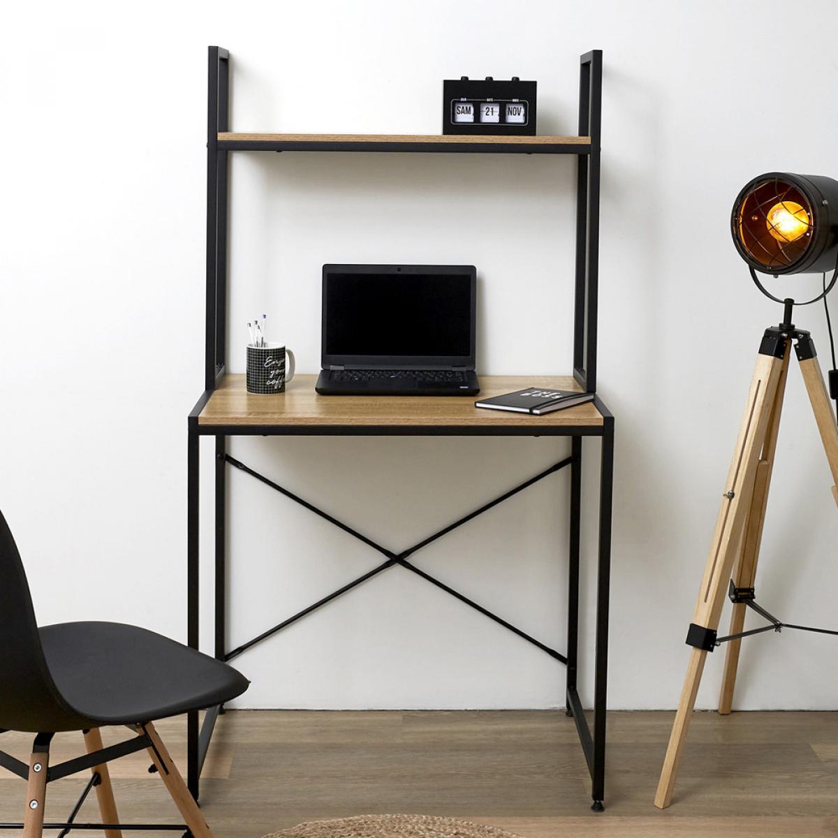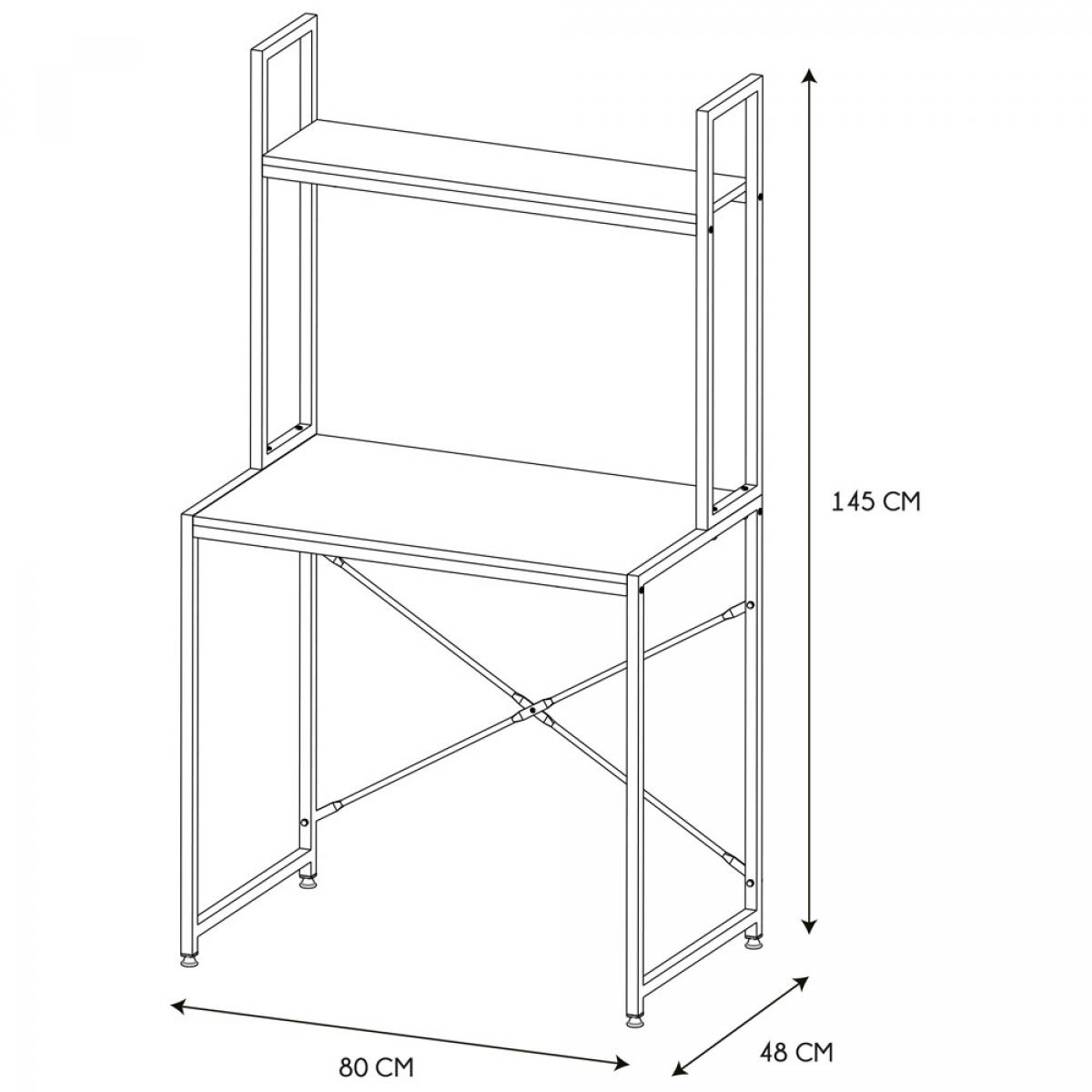 ESCRITORIO C/ESTANTE STAN Ideal para trabajar en casa. Permite un trabajo eficiente en buenas condiciones. Con una estantería para colocar efectos personales. Medidas: 80x48 cm; h.145 cm