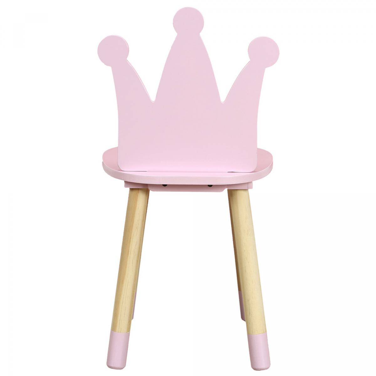 SILLA INFANTIL CORONA ROSA Esta silla con respaldo de corona llenará de encanto las habitaciones de los niños. Medidas: 28x27 cm; h.54 cm