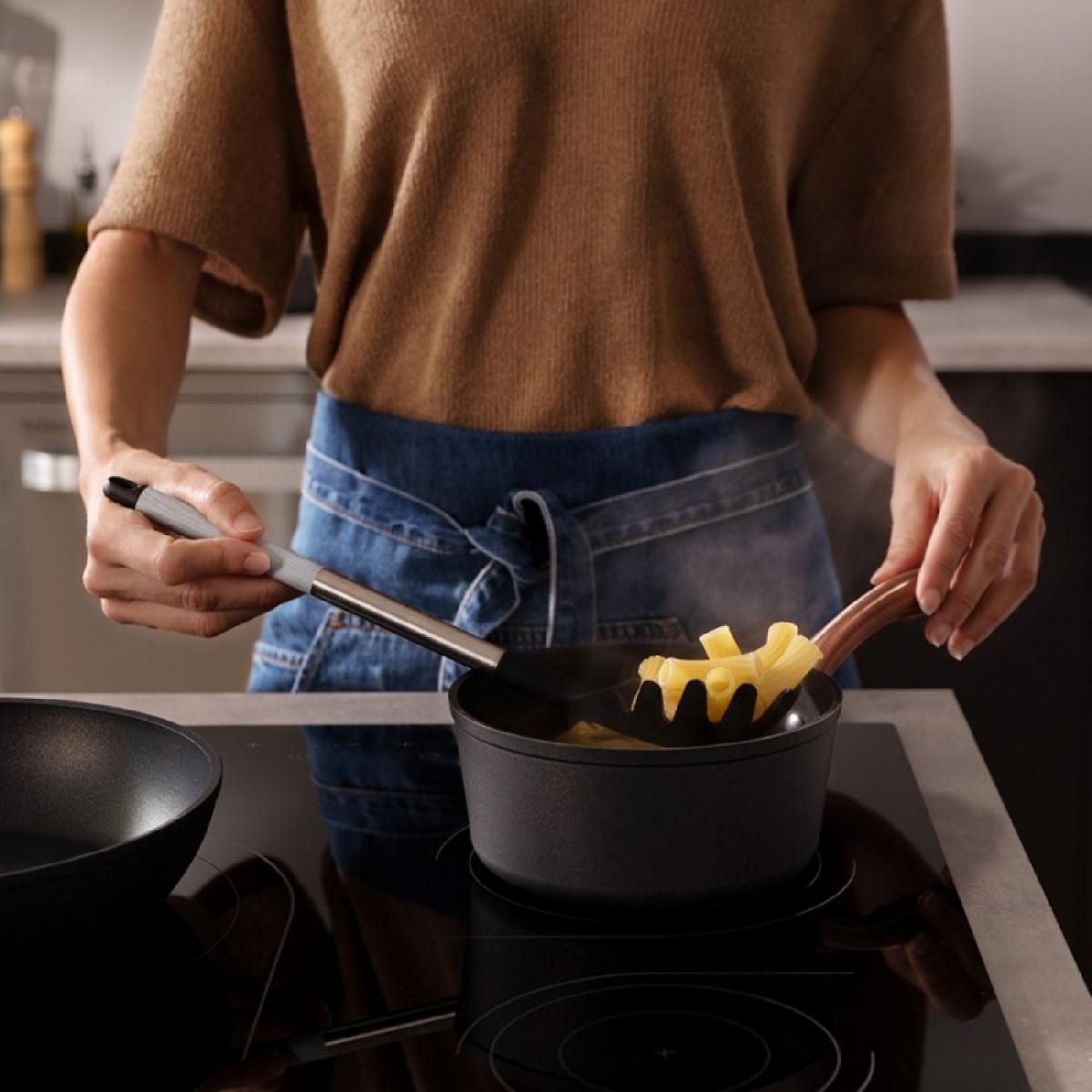 Cazo de 16 x 7,5 cm de aluminio forjado, de 1,3 L de capacidad. Con revestimiento antiadherente de alta calidad Platinum Plus Teflon® Nonstick Coating, 100 % libre de PFOA. Mango remachado semiprofesional de acero inoxidable acabado en color oro rosa. Fondo difusor de calor Full Induction. Apto para horno hasta 230ºC sin tapa, apto para lavar en lavavajillas y para todo tipo de cocinas incluida inducción. Compuesto por 5 capas y con 4 mm de base para inducción.