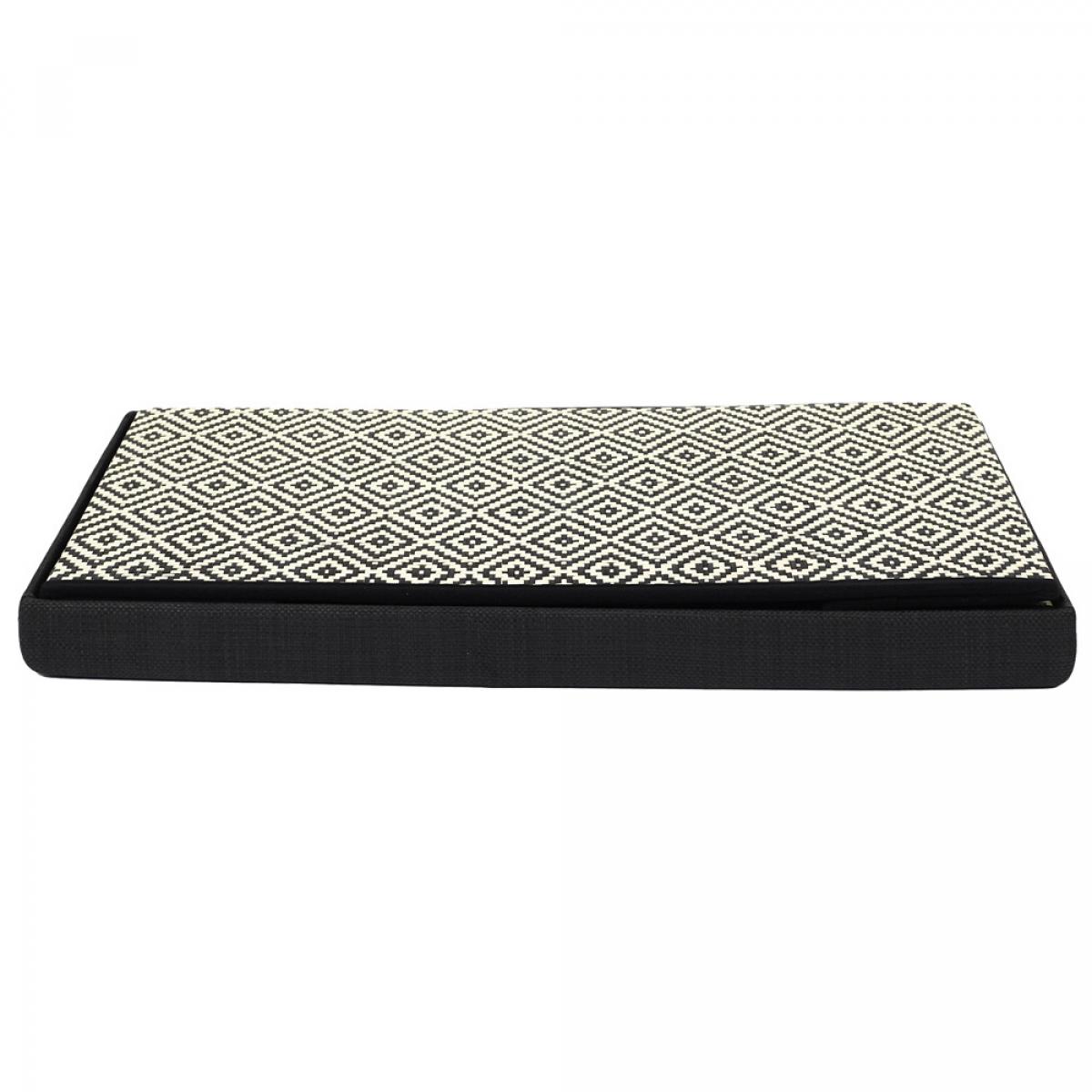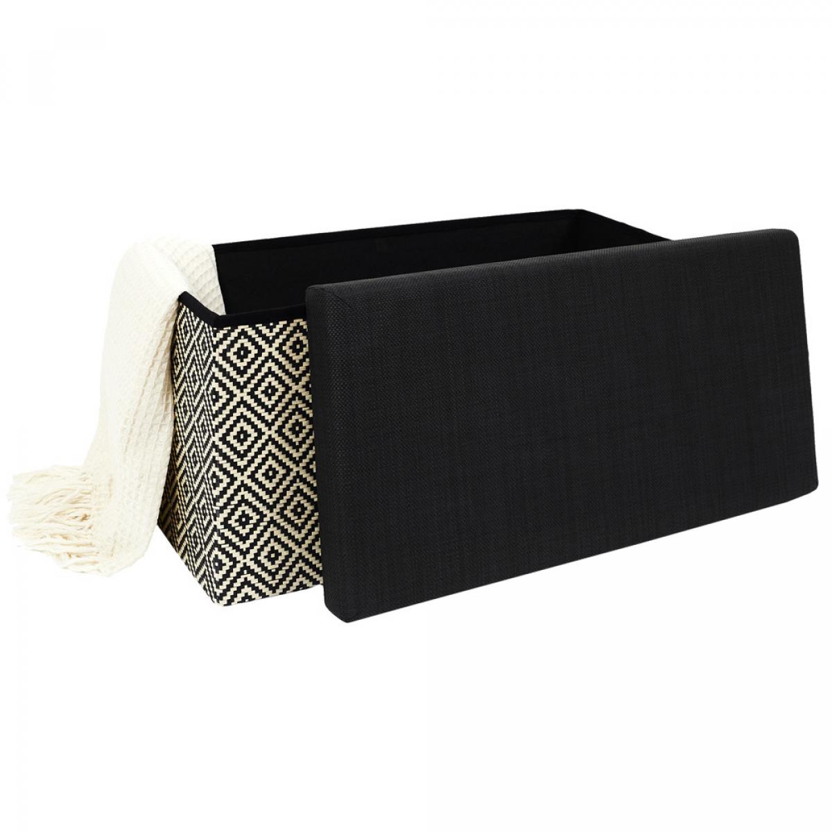 BANCO-PUF PLEG. TRENZADO NEGRO Con tapa negra. El diseño trenzado de esta caja plegable te seducirá. Ideal como asiento extra, te permitirá guardar tus efectos personales en su interior. Medidas: 76x38 cm; h.38 cm