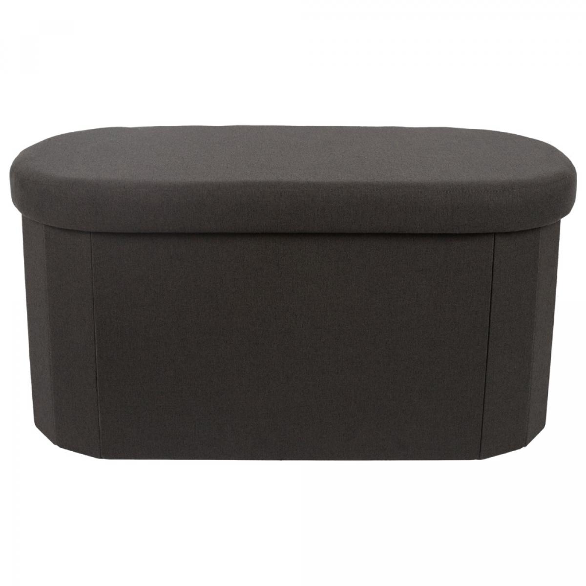 BANCO-PUF PLEGABLE NEGRO OVAL Cómodo asiento con generoso espacio de almacenaje. Encaja perfectamente en cualquier estilo de decoración. Se puede guardar fácilmente cuando no se use, es plegable. Soporta un peso máximo de 110 kg Estructura de madera MDF y tapizado de poliéster, relleno de PU. Medidas: 76x38 cm; h.38 cm