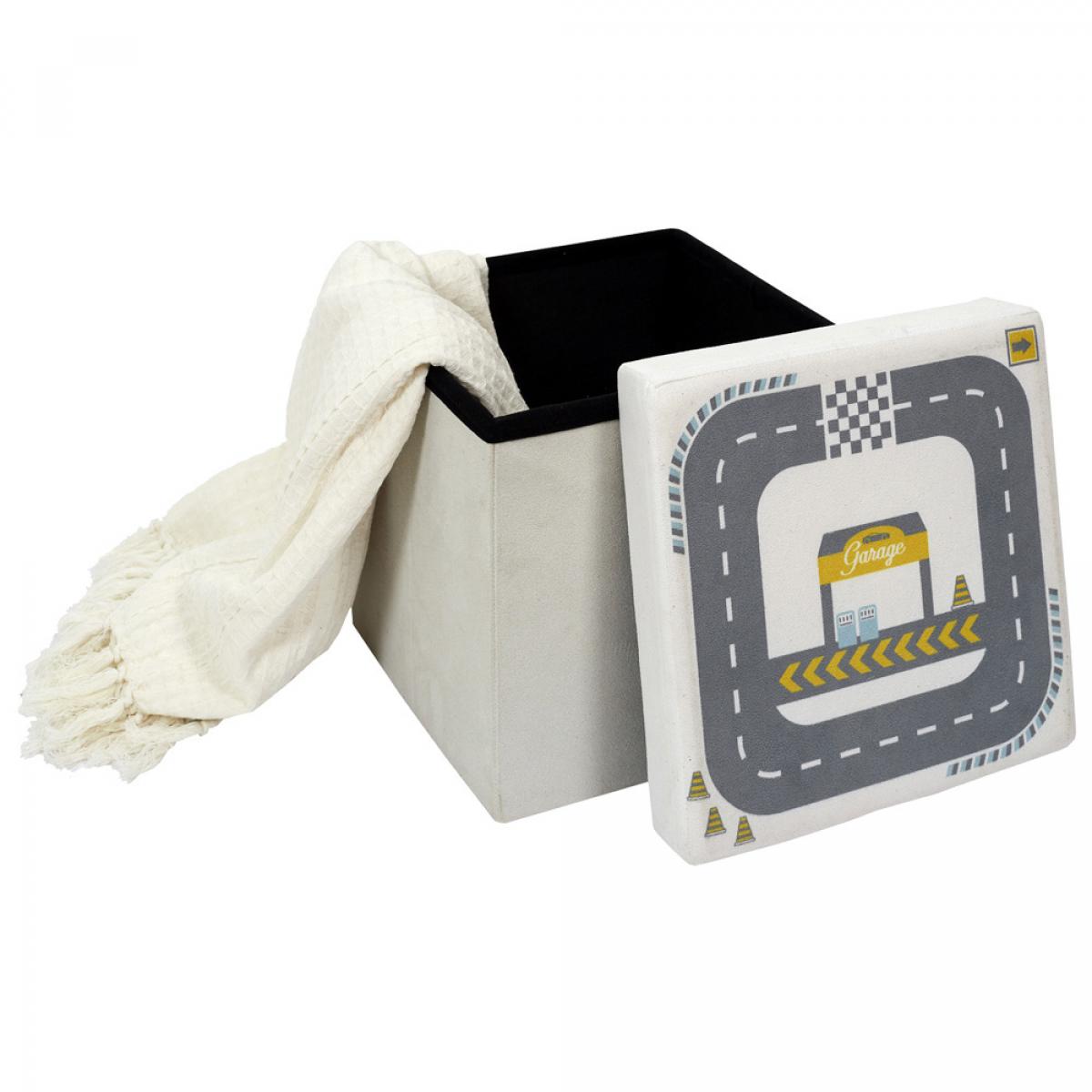 CAJA-PUF PLEGABLE CIRCUITO Para sentarse y guardar cosas. De tacto suave. Con dibujo de circuito. Medidas: 30x30 cm; h.30 cm