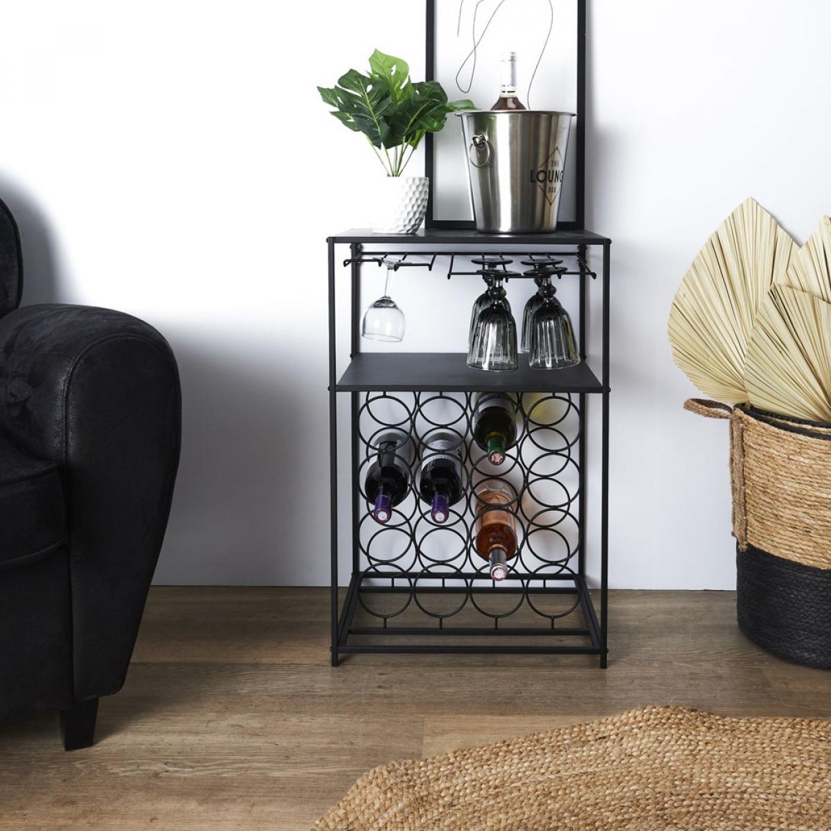 BOTELLERO PARA 16 BOTELLAS Con railes para colgar copas. Puede funcionar como mesa auxiliar. Medidas: 45x35 cm; h.70 cm