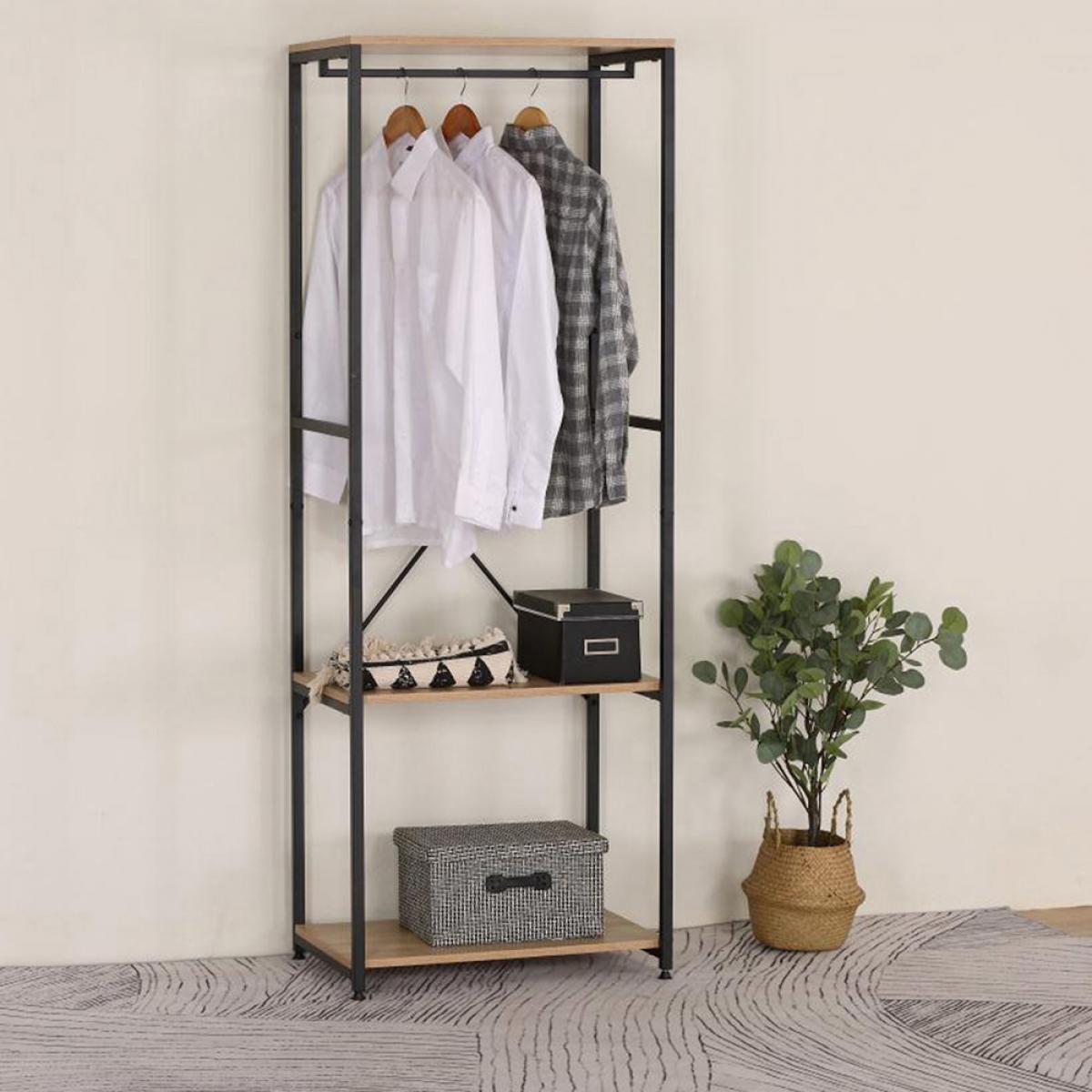 PERCHERO C/2 ESTANTES STAN Optimice el amacenamiento de su ropa con facilidad gracias a este perchero de madera y metal. Medidas: 60x40,4 cm; h.167 cm