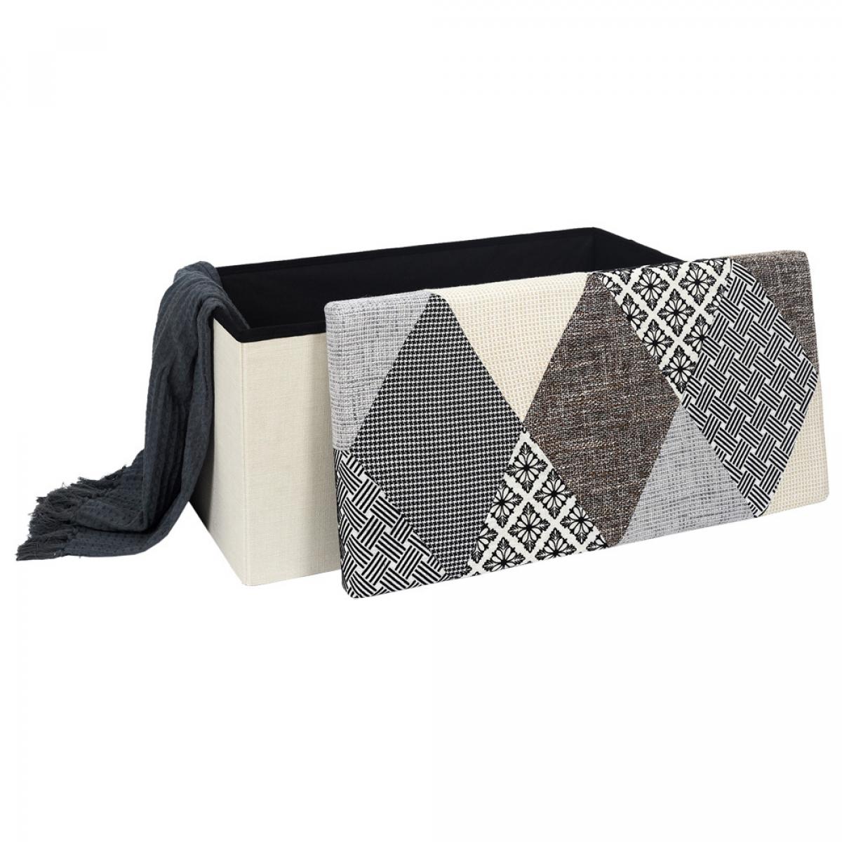 BANCO-PUF PLEGABLE PATCHWORK El diseño de este banco-puf te encantará. Sus colores combinarán con tu salón o tu habitación. Consigue un asiento extra donde guardar algunos efectos personales. Medidas: 76x38 cm; h.38 cm