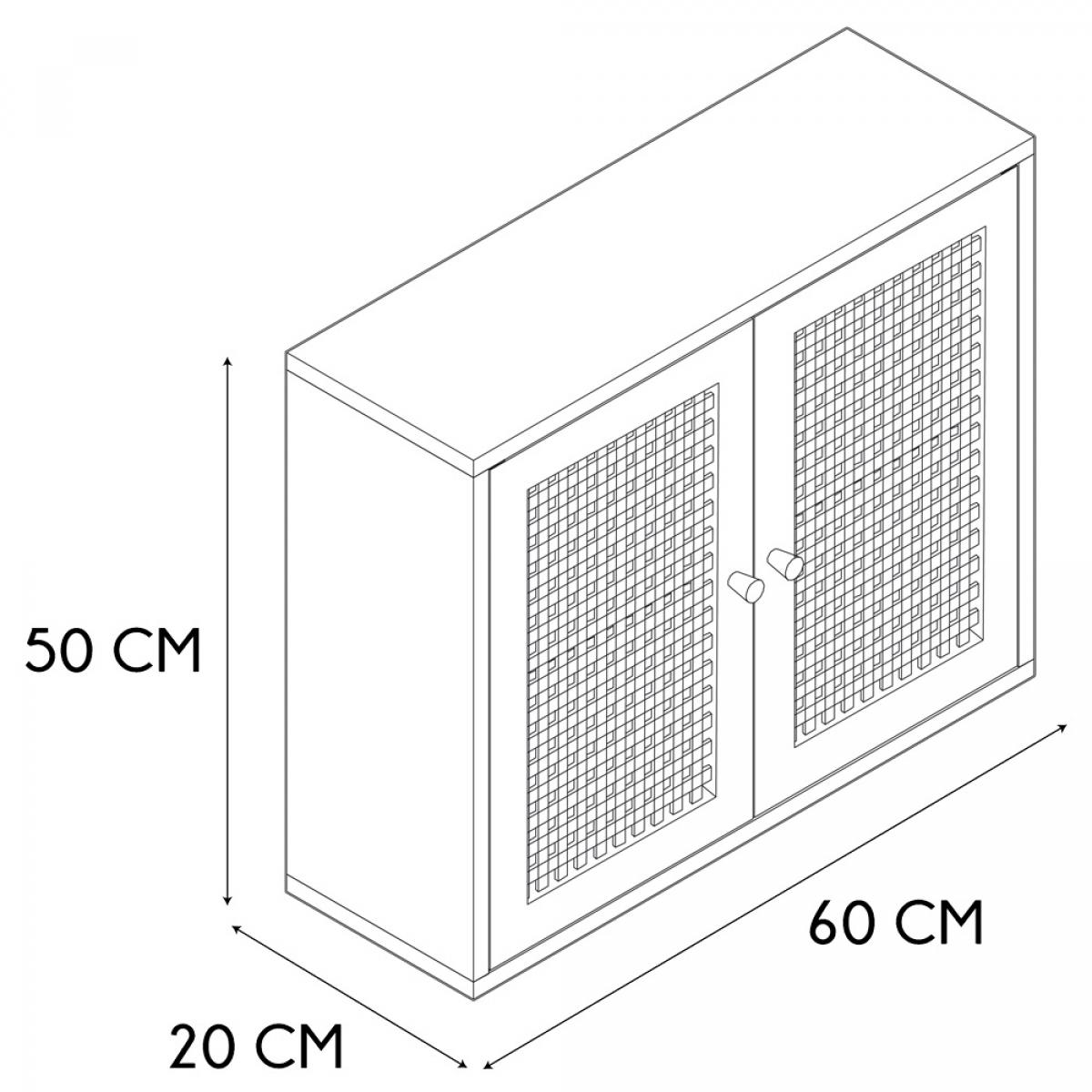 ARMARIO PARED BALI 60x20 H.50 Gana un espacio extra con este armario que combina con el resto de muebles de la série Bali. De madera (panel de partículas y MDF) y ratán. Medidas: 60x20 cm; h.50 cm