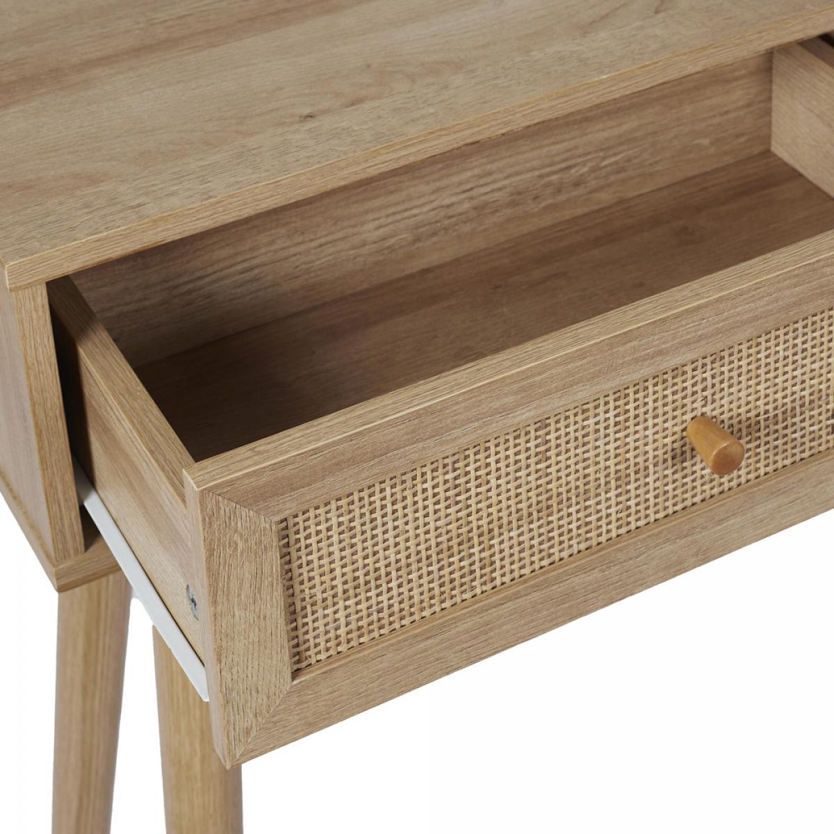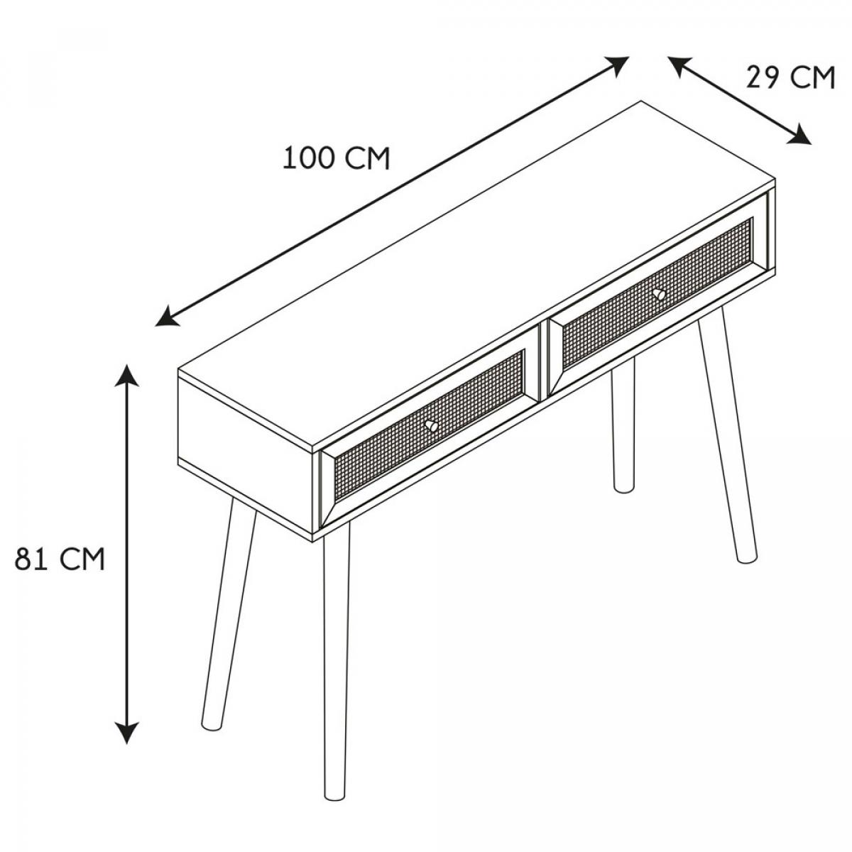 CONSOLA C/2 CAJONES BALI Moderniza la decoración de tu hogar aportando una de exotismo balinés. Gana espacio de almacenamiento con esta práctica consola de 2 cajones. De madera (panel de partículas y MDF) y ratán. Medidas: 100x29 cm; h.81 cm