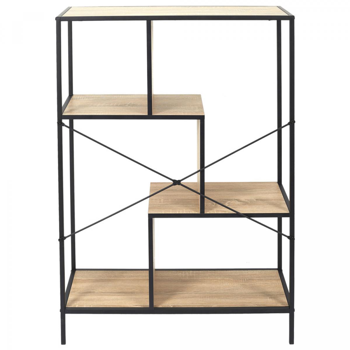 ESTANTERÍA 80x30x113 CM EDISON Con estructura de hierro y baldas de madera de partículas. Acabado en negro. Almacena y exhibe con estilo en las estanterías Edison. Altura de las patas: 15 cm (del suelo al primer estante). Medidas: 80x30 cm; h.113 cm