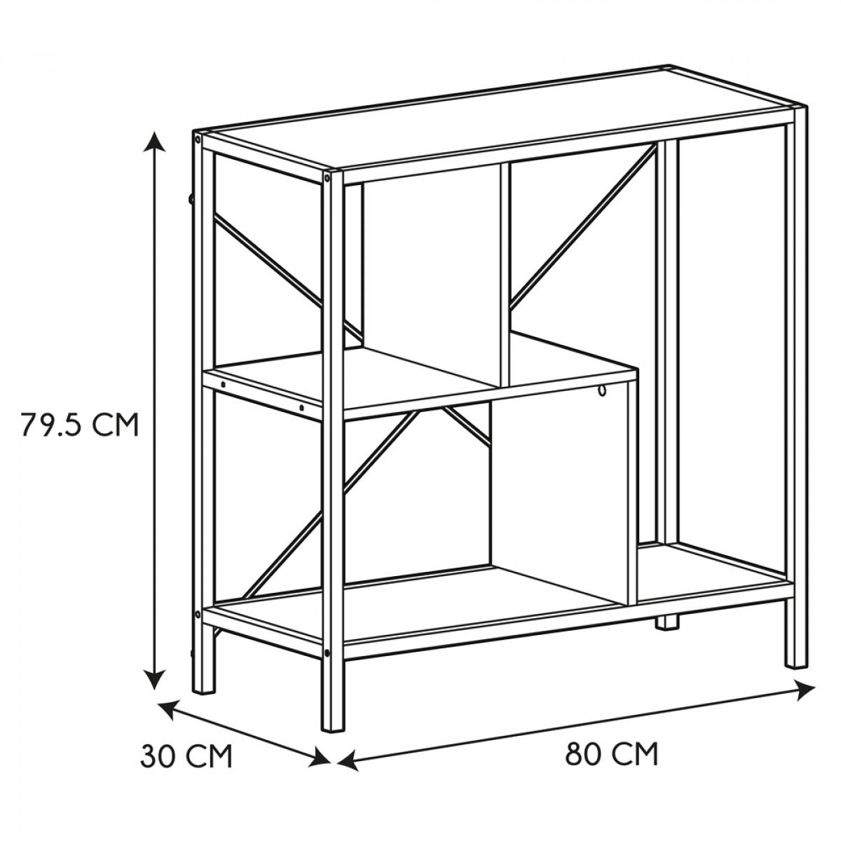 ESTANTERÍA 80x30x79 CM EDISON Con estructura de hierro y baldas de madera de partículas. Acabado en negro. Almacena y exhibe con estilo en las estanterías Edison. Altura de las patas: 15 cm (del suelo al primer estante). Medidas: 80x30 cm; h.79,5 cm