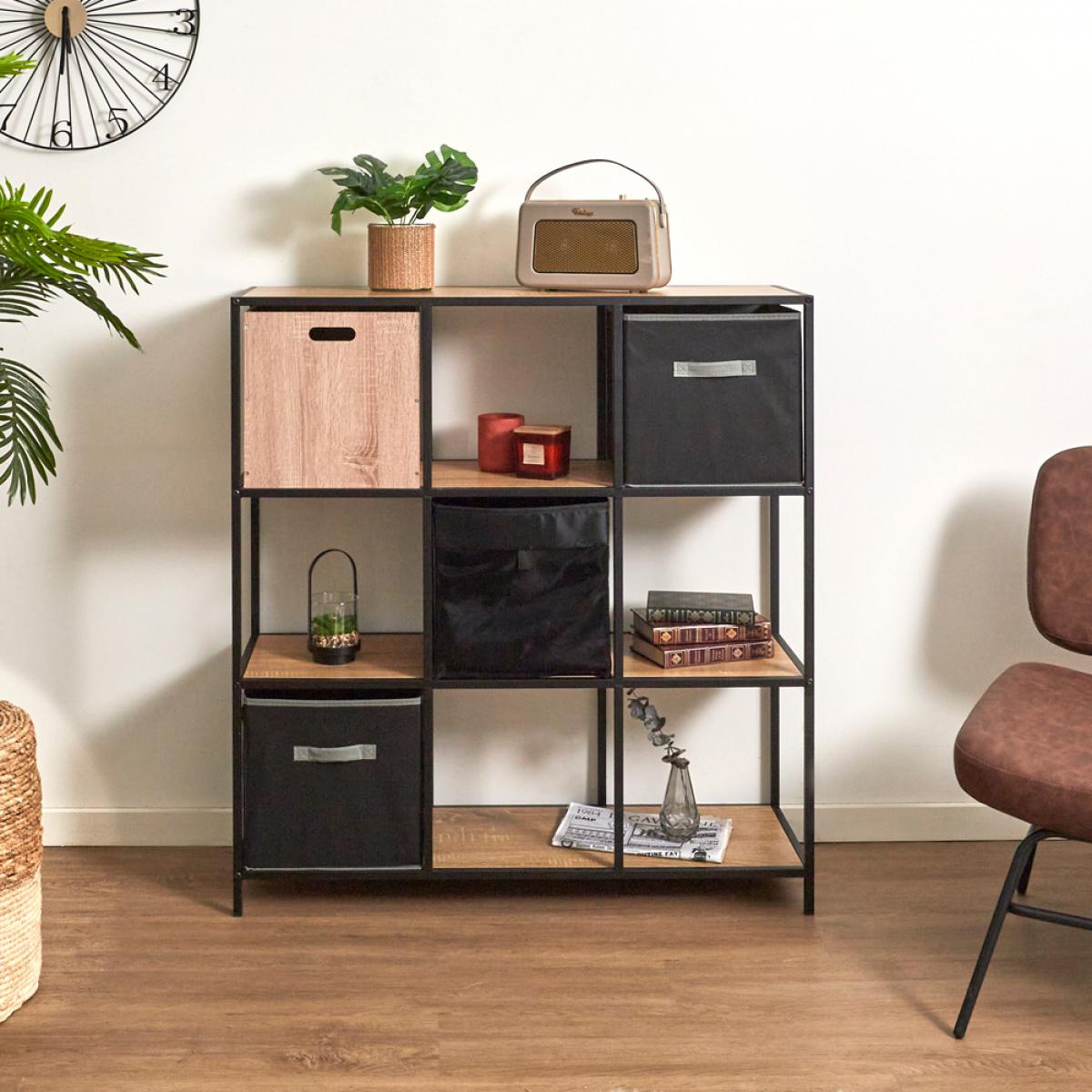 ESTANTERÍA LOKA C/9 COMPARTIME Estantería de cubos Loka de 9 compartimentos. Personalízala con cestas y cajas (se venden por separado). Aporta un toque de modernidad a tu interior y ofrece una práctica solución de almacenamiento. De madera MDF y hierro. Medidas: 99x32 cm; h.105,5 cm