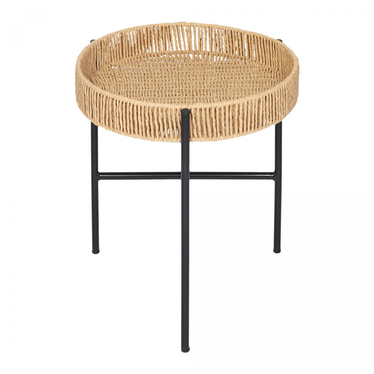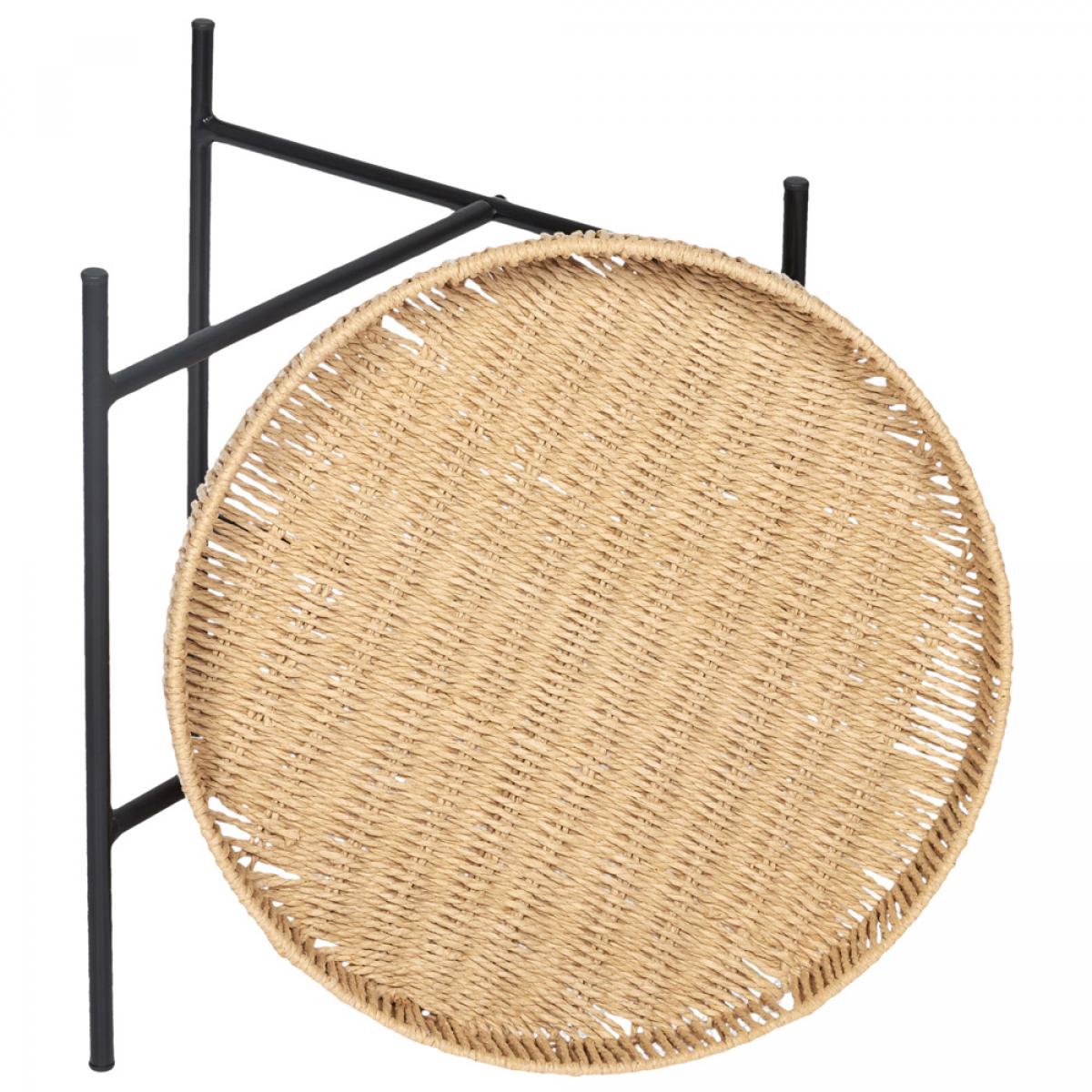 JGO. 2 MESAS NIDO PAMPA Conjunto de dos mesas auxiliares desmontables. Permiten adaptar el espacio a tus deseos y necesidades, ganando superficies extra para tus objetos y utensilios. De hierro y papel. Cálidas y elegantes. Con tres patas. Medidas: Mesa grande: d.41 cm; h.42 cm Mesa pequeña: d.36 cm; h.37 cm