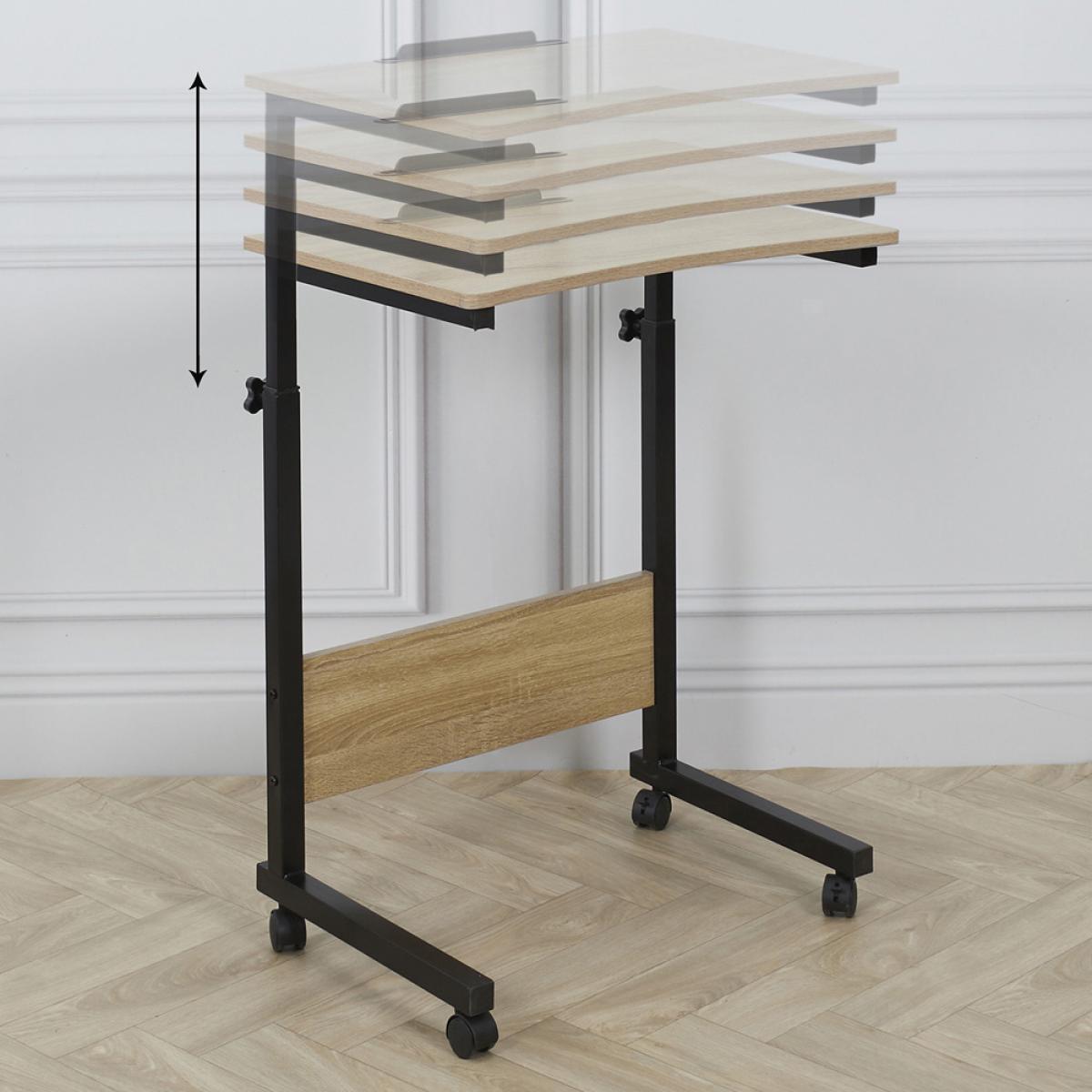 MESA ALTURA REGULABLE C/RUEDAS Te permite trabajar, comer... a distintas alturas. Con ruedas. De madera y metal. Medidas: 60x40 cm; h.78-96 cm