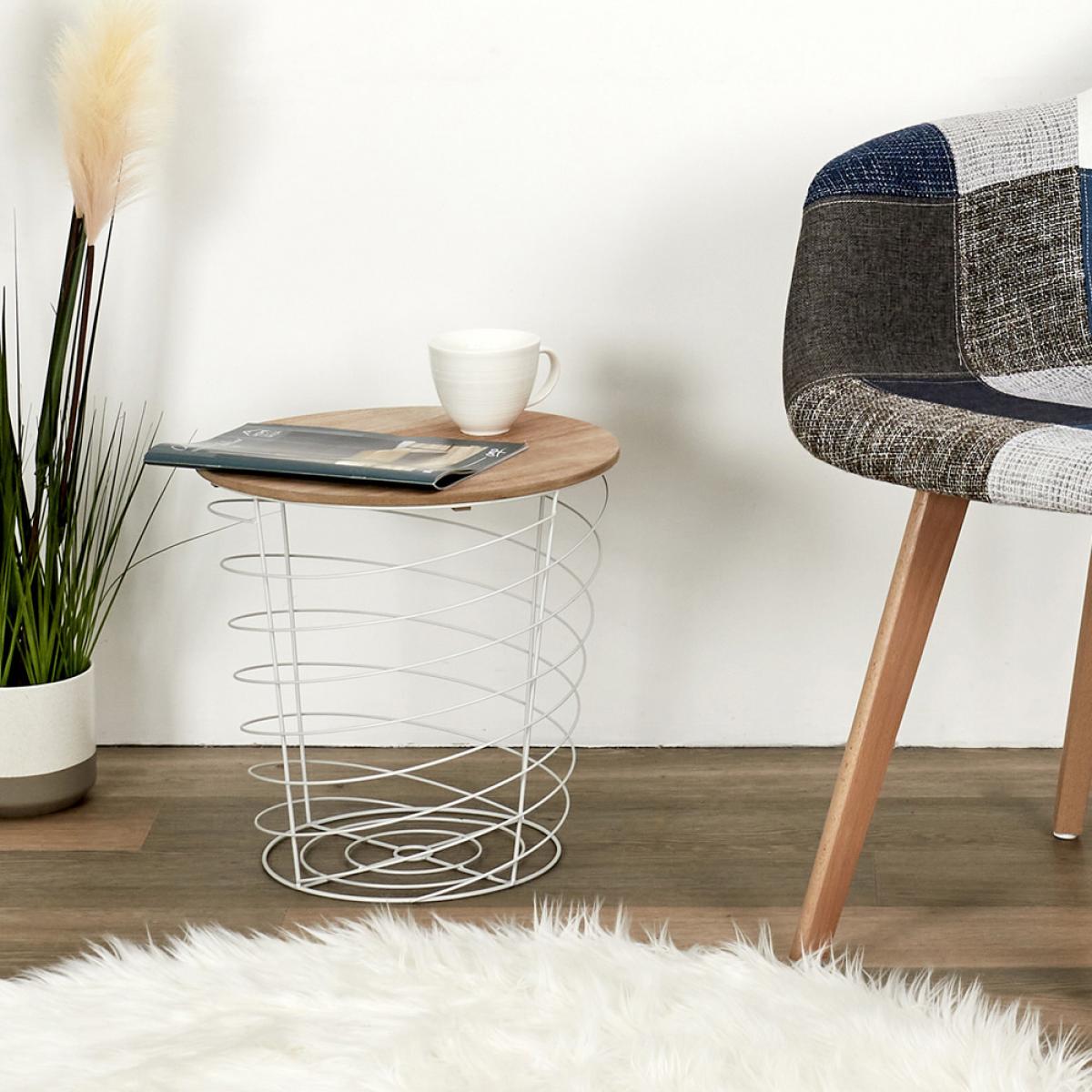 MESA VARILLA CYCLONE BLANCO Acompañe su sala de estar o una terraza con esta magnífica mesa con varillas para un efecto 100% decorativo y moderno. Con varilla blanca en forma de elicoide o ciclón y con una tapa de madera extraíble. Al levantar la tapa, puedes disfrutar de un espacio de almacenamiento original para que todos lo vean. Medidas: d.40 cm; h.40,5 cm
