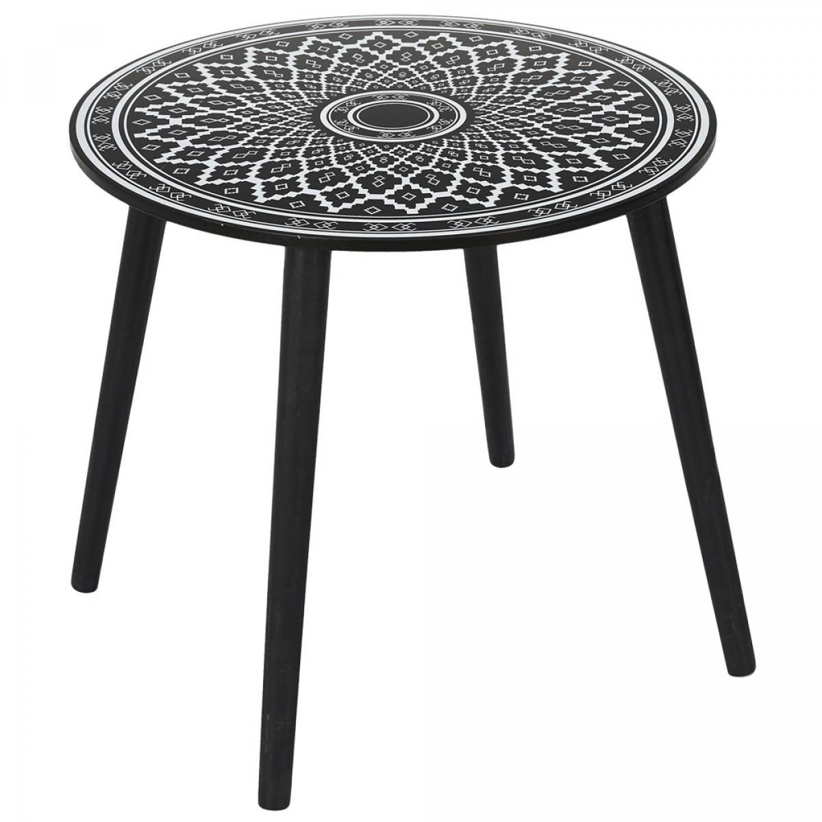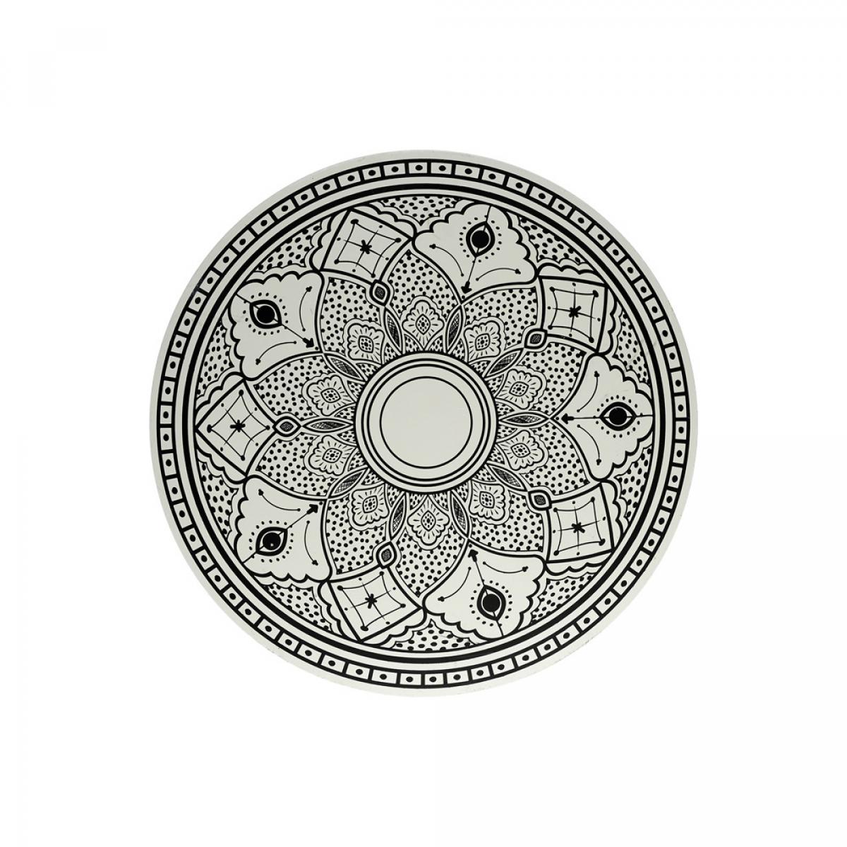 SET 2 MESAS NIDO MIRAGE Optimiza el espacio de tu sala de estar con este par de mesas nido con estampados Mirage. Aporta un toque exótico a tu hogar. Con patas negras. Medidas: Mesa grande: d.48 cm; h.43 cm Mesa pequeña: d.33 cm; h.40 cm
