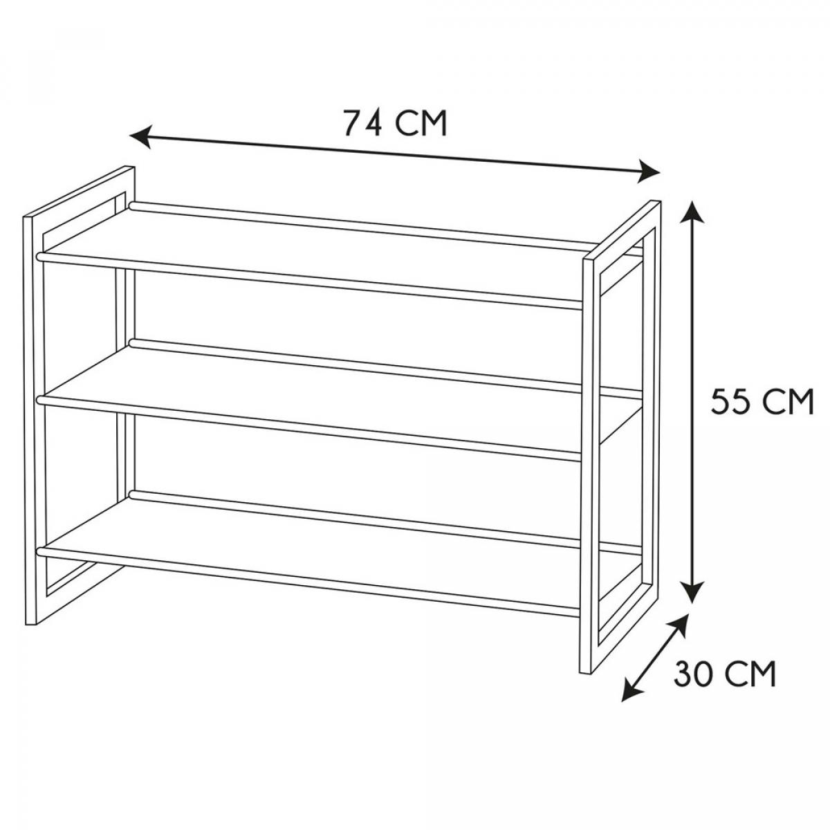 ESTANTE ZAPATERO 3 BALDAS Para almacenar exhibiendo tus zapatos. Soportes laterales de madera y baldas de metal. Medidas: 74x30 cm; h.55 cm