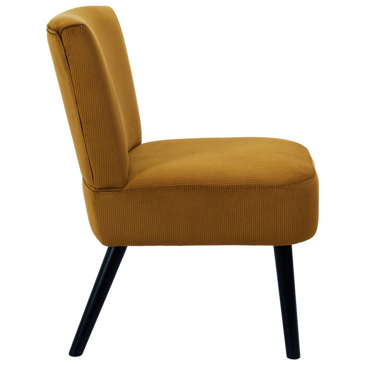 BUTACA MOSTAZA GIULIA Siéntate con estilo en esta butaca tipo sillón con tapizado de terciopelo mostaza. Con cuatro patas de metal. Comodidad con diseño ultra-chic. Medidas: 55x63 cm; h.76 cm; altura del asiento: 45 cm