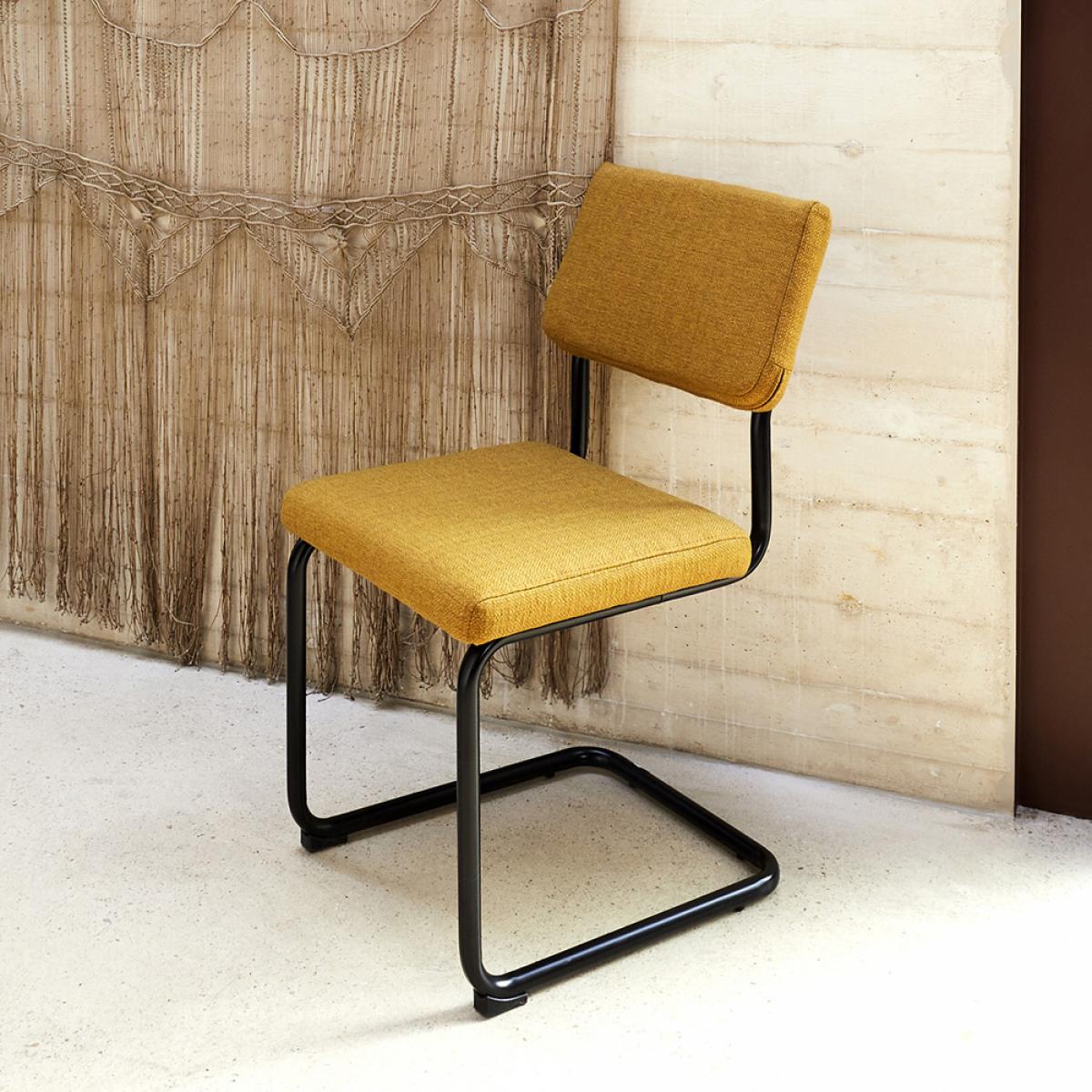 SET 2 SILLAS MOSTAZA ALBA Esta silla de tubo contínuo aporta un toque vintage a tu decoración. Soporta un peso máximo de 110 kg Altura del asiento: 48 cm Medidas: 56x47 cm; h.84 cm