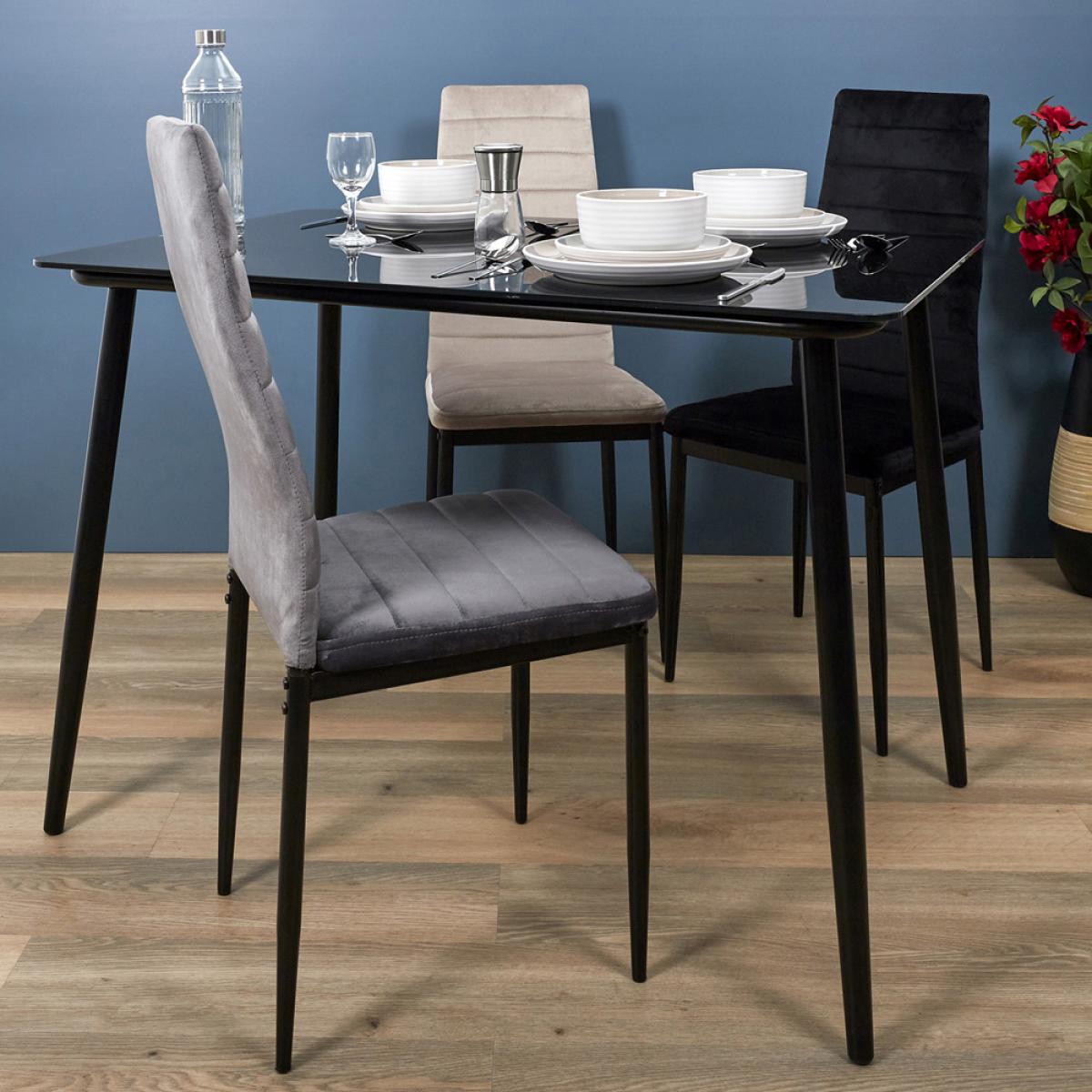 SET 2 SILLAS TERCIOPELO NEGRO VÍCTOR Elige esta SET 2 SILLAS de terciopelo con aire retro que destaca por su elegancia. Soporta un peso máximo de 110 kg Altura del asiento: 45,5 cm Medidas: 50,5x48 cm; h.94,5 cm