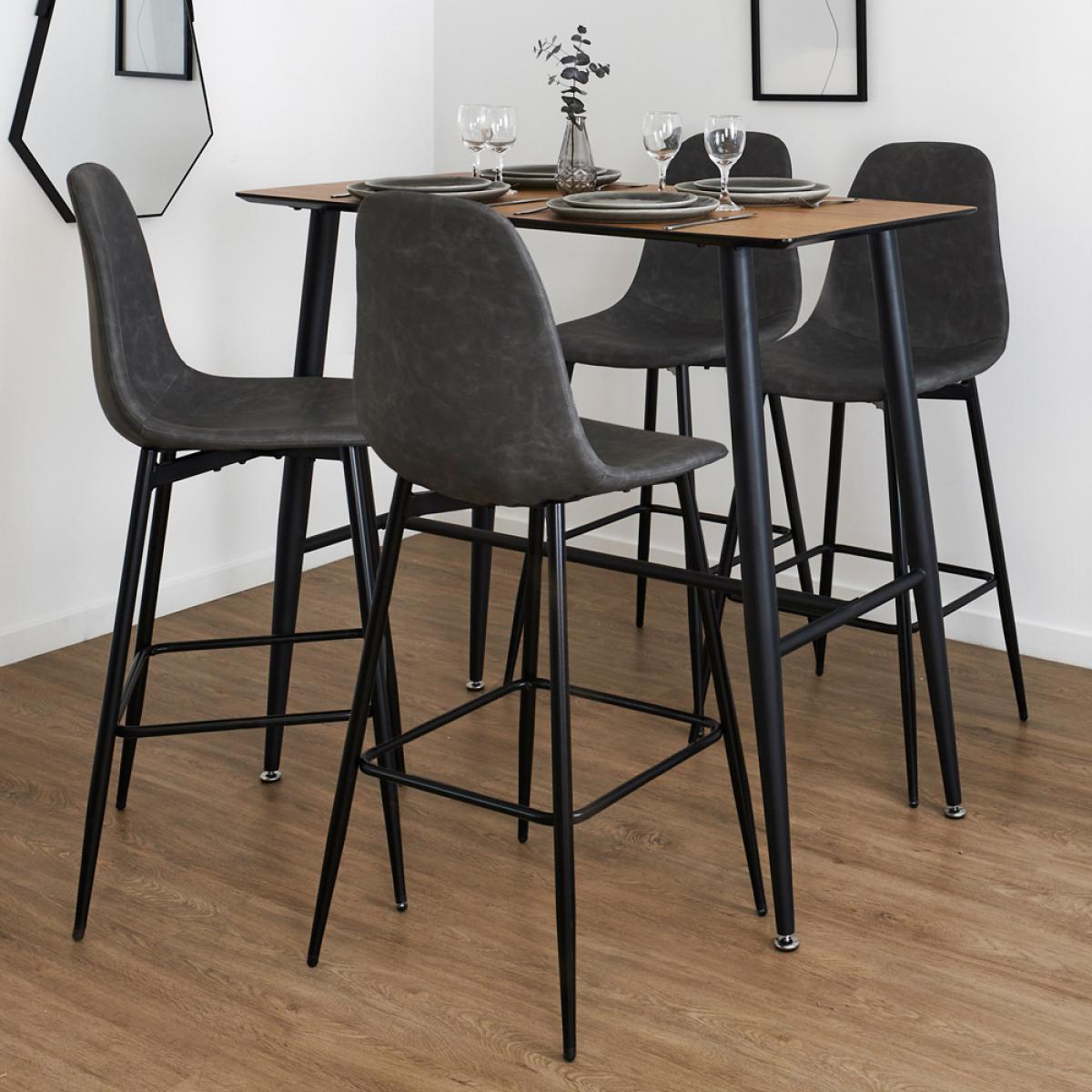 SET 2 TABURETES BAR GRIS AMBER Descubre esta silla de bar cómoda y elegante, para tu zona de relax o bar. Diseño moderno de linieas limpias que aporta un toque sofisticado a la decoración interior, creando un ambiente agradable y acogedor. Soporta un peso máximo de 110 kg Materiales: respaldo de madera contrachapada, asiento de plástico PU relleno de PU y patas de hierro. Medidas: 46x53,5 cm; h.106 cm; altura del asiento: 70 cm