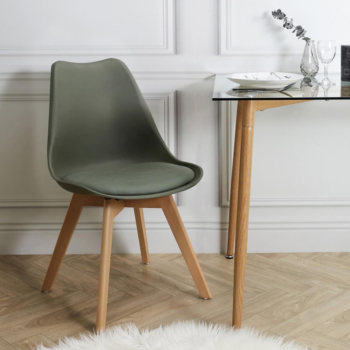 SET 4 SILLAS ACOLCHADA CAQUI. De diseño escandinavo tipo Beech Tulipa de Charles Eames. Ideal para dar un aire de modernidad a sus interiores. Muy cómoda y confortable. Patas de madera de haya y asiento acolchado. Soporta un peso máximo de 110 kg Medidas: 48,5x57 cm; h.83,5 cm. Altura del asiento: 41,5 cm