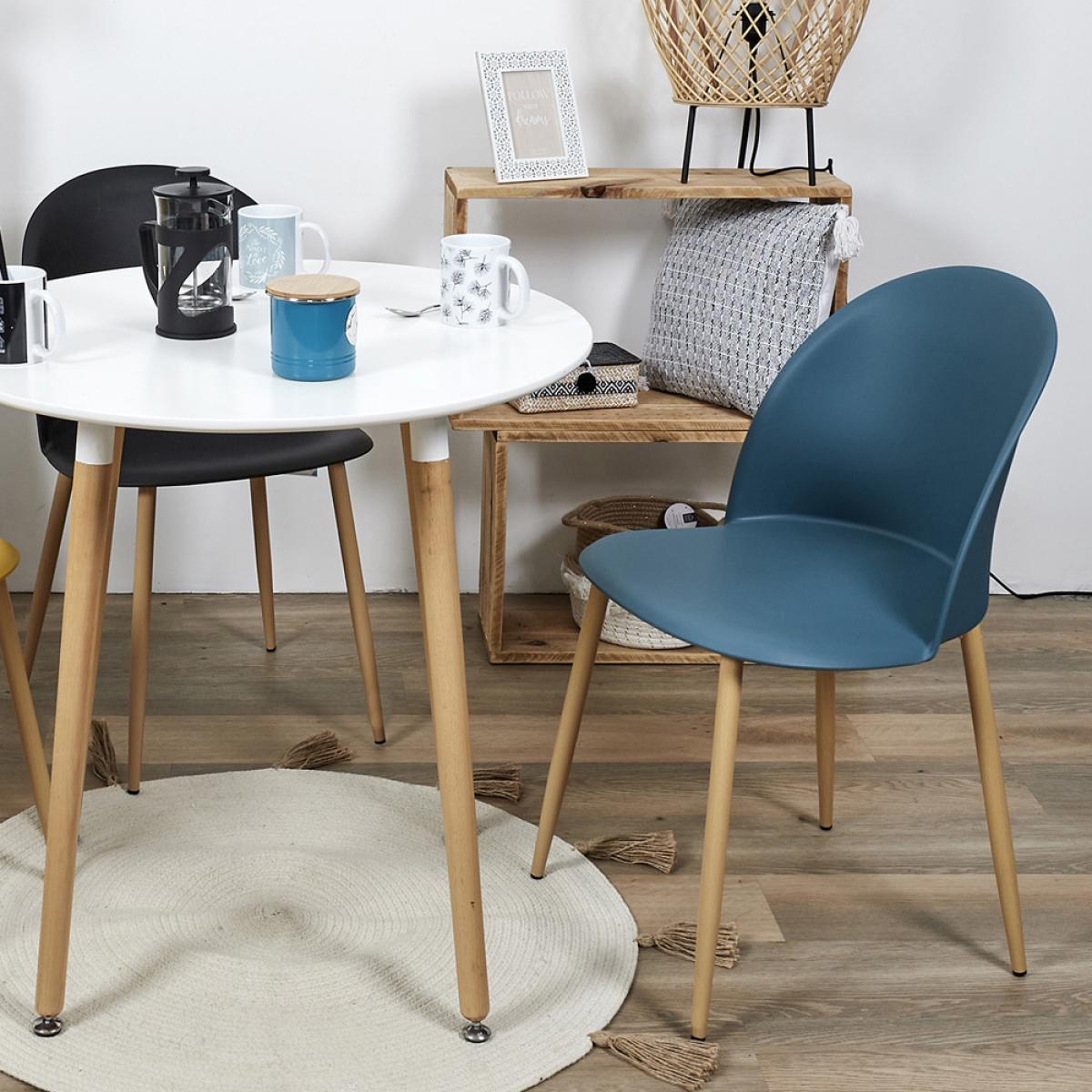 SET 4 SILLAS ESCANDINAVAS BERGEN AZUL Opta por una silla con estilo para dar elegancia a tus interiores. Con asiento de plástico y patas de metal con aspecto de madera. Soporta un peso máximo de 110 kg Medidas: 49x47 cm; h.81 cm