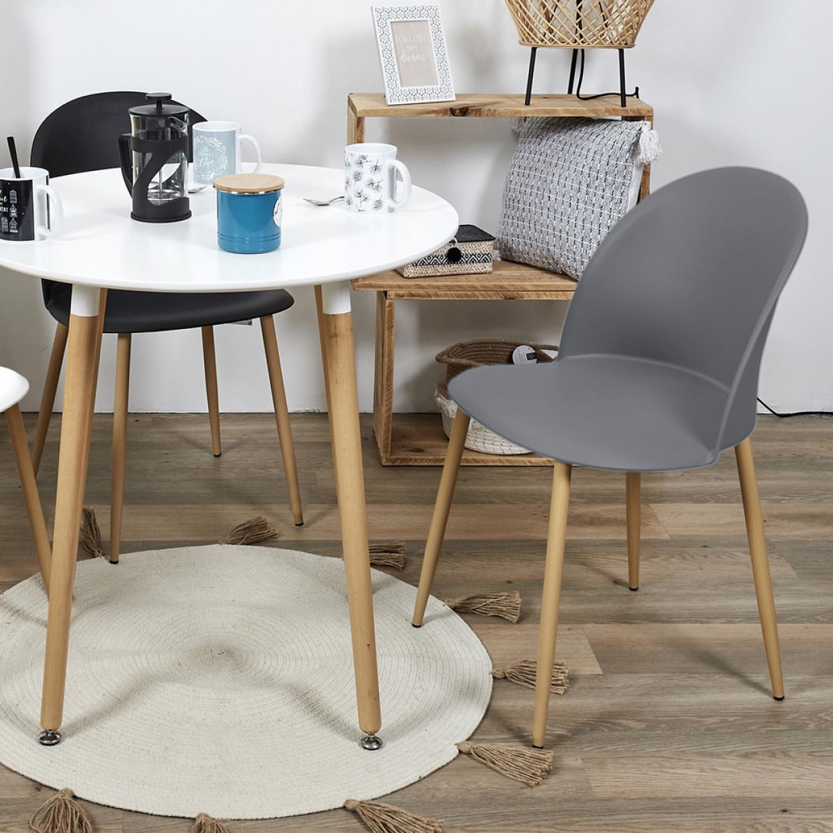SET 4 SILLAS ESCANDINAVAS BERGEN GRIS Opta por una silla con estilo para dar elegancia a tus interiores. Con asiento de plástico y patas de metal con aspecto de madera. Soporta un peso máximo de 110 kg Medidas: 49x47 cm; h.81 cm