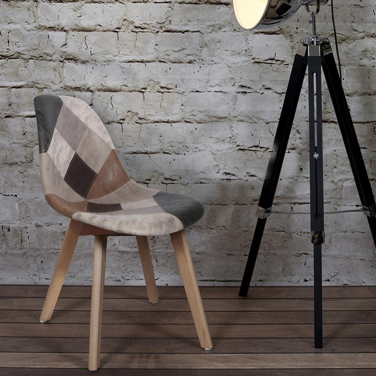 SET 4 SILLAS PATCHWORK MARRÓN-GRIS Acabado patchwork en tonos marrones y grises. Te encantarán cada una de las piezas que componen el tapizado suave de esta silla. Con patas de madera de haya. Después de probar su asiento, te costará dejarlo. Sin duda, este modelo aportará un toque ultra-chic a tu salón. Soporta un peso máximo de 110 kg Medidas: 46x55 cm; h.85 cm