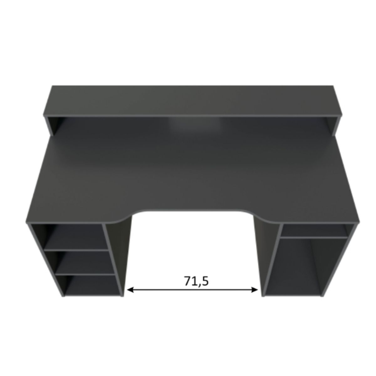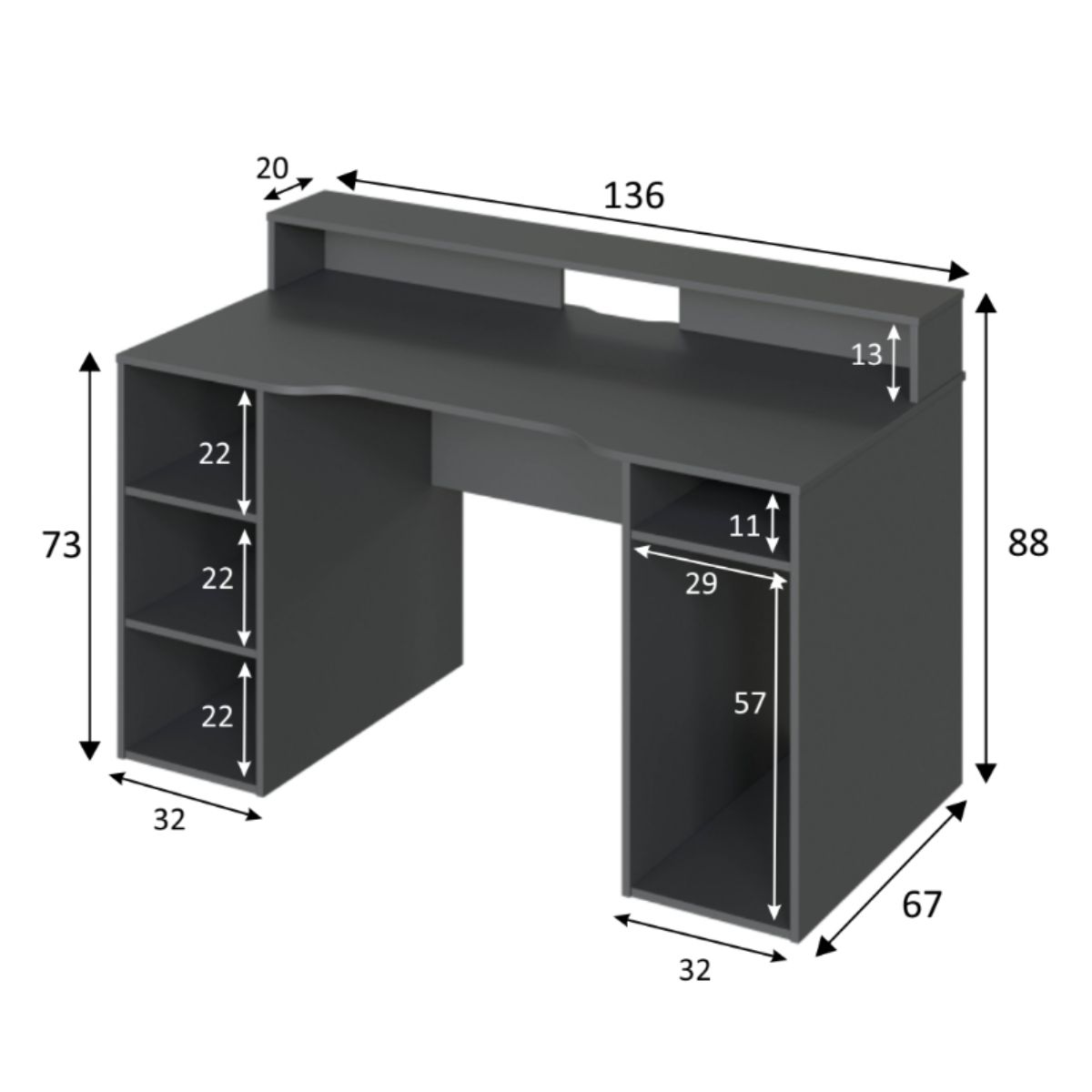 Mesa para ordenador reversible con huecos pasacables. Disponible en color gris antracita.