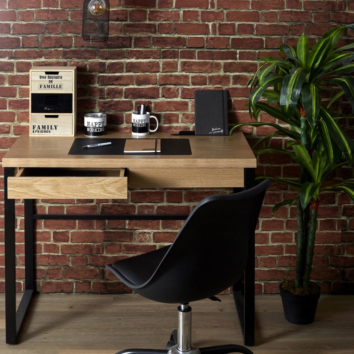 MESA DESPACHO MADERA Y METAL Escritorio perfectamente organizado para permitir un trabajo efectivo en su despacho. Con cajón y una almohadilla para el ordenador. Medidas: 100x50,3 cm; h.74 cm