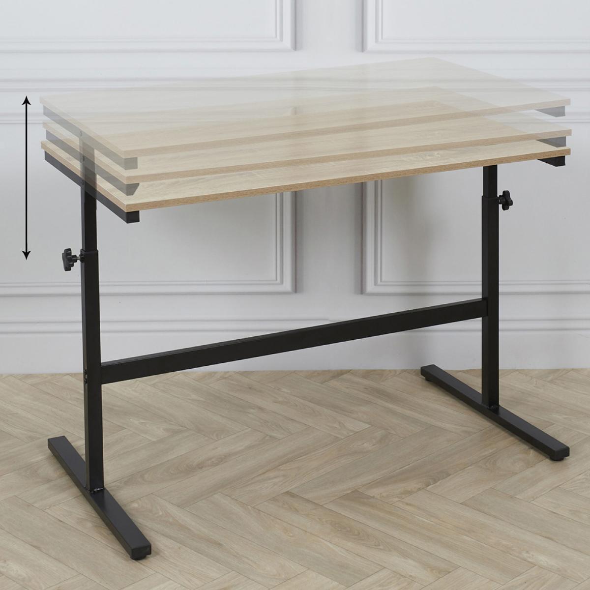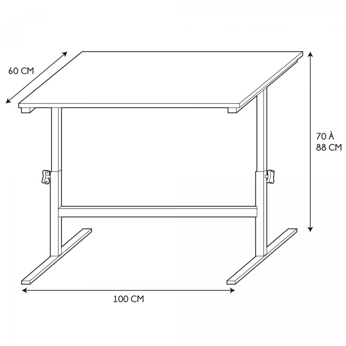 MESA-ESCRITORIO ALTURA REGULAB Mesa de altura regulable de 70 a 90 cm. Te permite trabajar, comer... de pie o sentado. De madera y metal. Medidas: 100x60 cm; h.70-90 cm