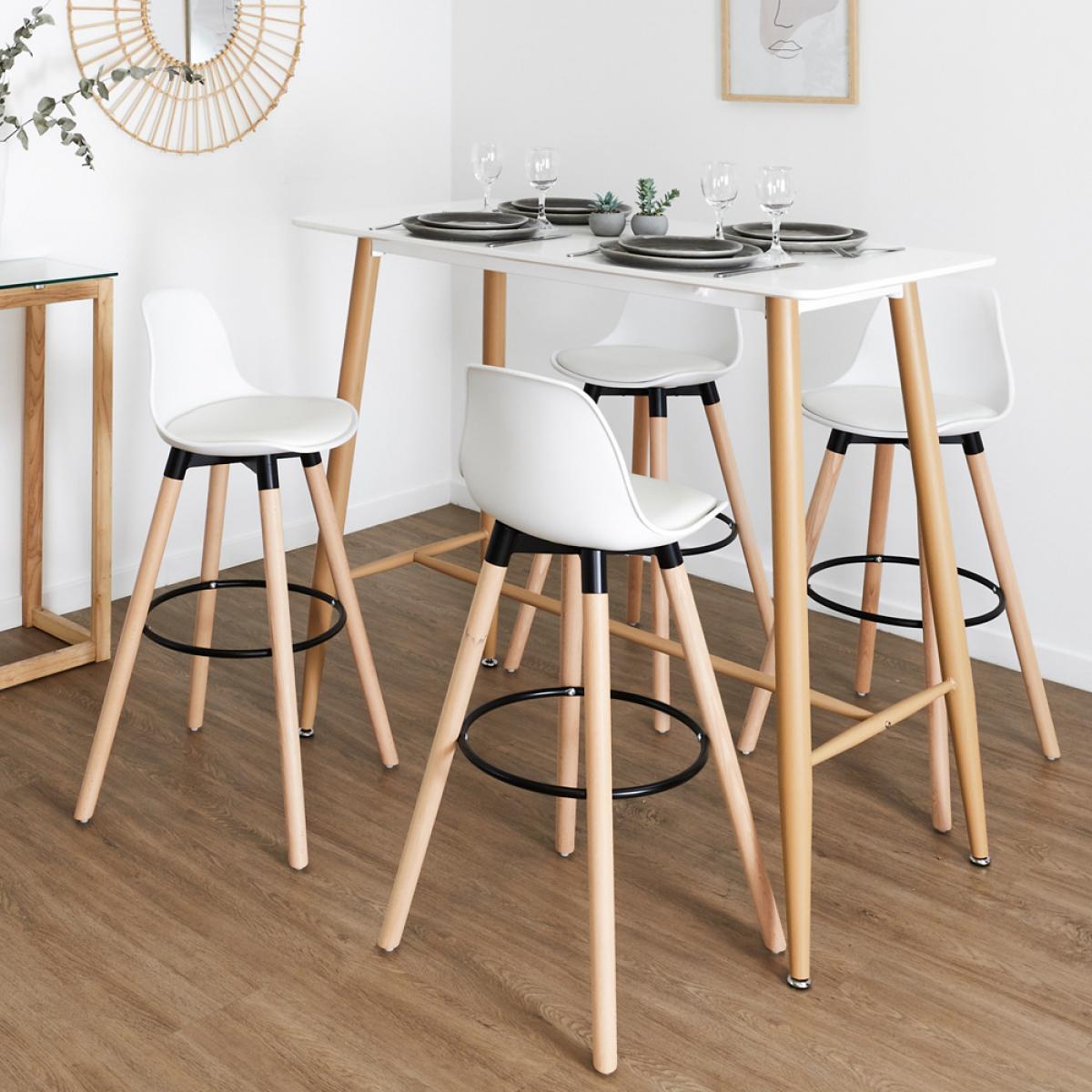 SET 2 TABURETES BAR BLANCO WALT Fabricado con materiales de alta calidad, el Taburete Walt ofrece un asiento cómodo, duradero y elegante. Soporta un peso máximo de 110 kg De haya, plástico y hierro. Asiento de PP con cojín de PVC relleno de poliéster. Patas de madera de haya. Medidas: 37x41 cm; h.91 cm Altura del asiento: 70 cm