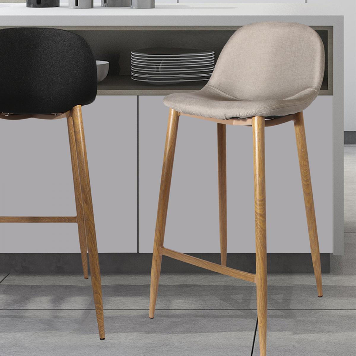 SET 4 TABURETES BAR TELA BEIGE Mejora el espacio alrededor de una isla central con este taburete de bar ultra-chic. Su asiento textil descansa sobre 4 preciosas patas de metal efecto madera, este diseño te encantará. Altura del asiento: 73 cm Medidas: 40x47 cm; h.92 cm
