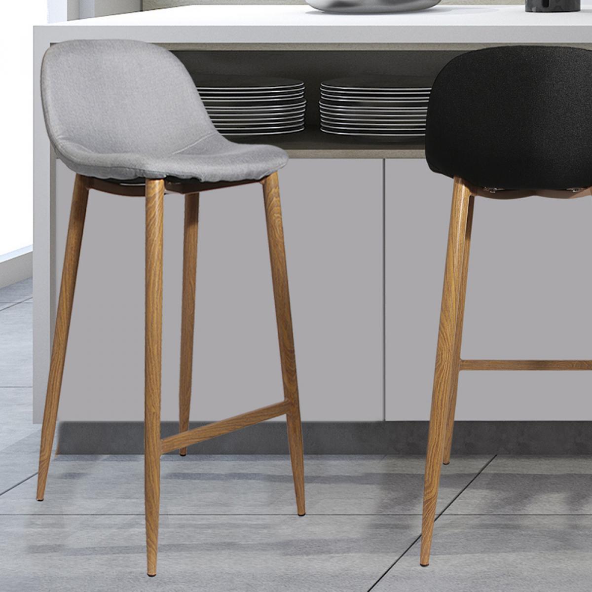 SET 4 TABURETESS BAR TELA GRIS Mejora el espacio alrededor de una isla central con este taburete de bar ultra-chic. Su asiento textil descansa sobre 4 preciosas patas de metal efecto madera, este diseño te encantará. Altura del asiento: 73 cm Medidas: 40x47 cm; h.92 cm