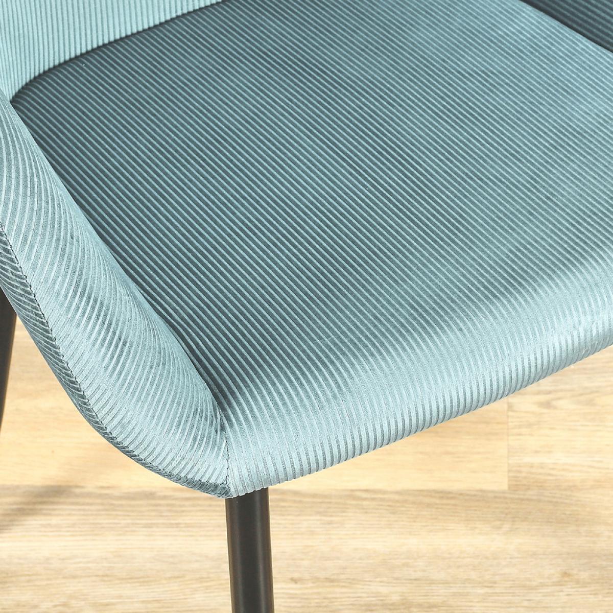 BUTACA AZUL GIULIA Siéntate con estilo en esta SET 2 SILLAS butaca Giulia de inspiración escandinava. Su elegante tapizado de terciopelo contrasta con sus 4 patas de metal para realzar la decoración de tu estancia. Ponte cómodo, ¡éxito garantizado! Altura del asiento: 46,5 cm Medidas: 59x55,7 cm; h.85 cm