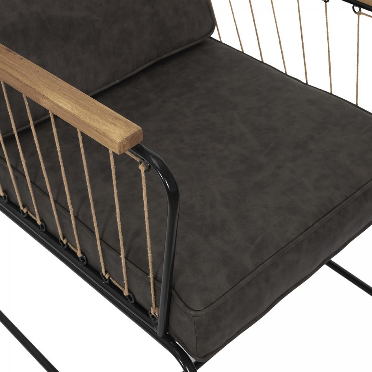 BUTACA BENSON Original butaca de estilo industrial que combina tela, metal, madera y cuerda. Comodidad con tacto suave. Soporta un peso máximo de 110 kg Altura del asiento: 43 cm Medidas: 63x73 cm; h.79 cm