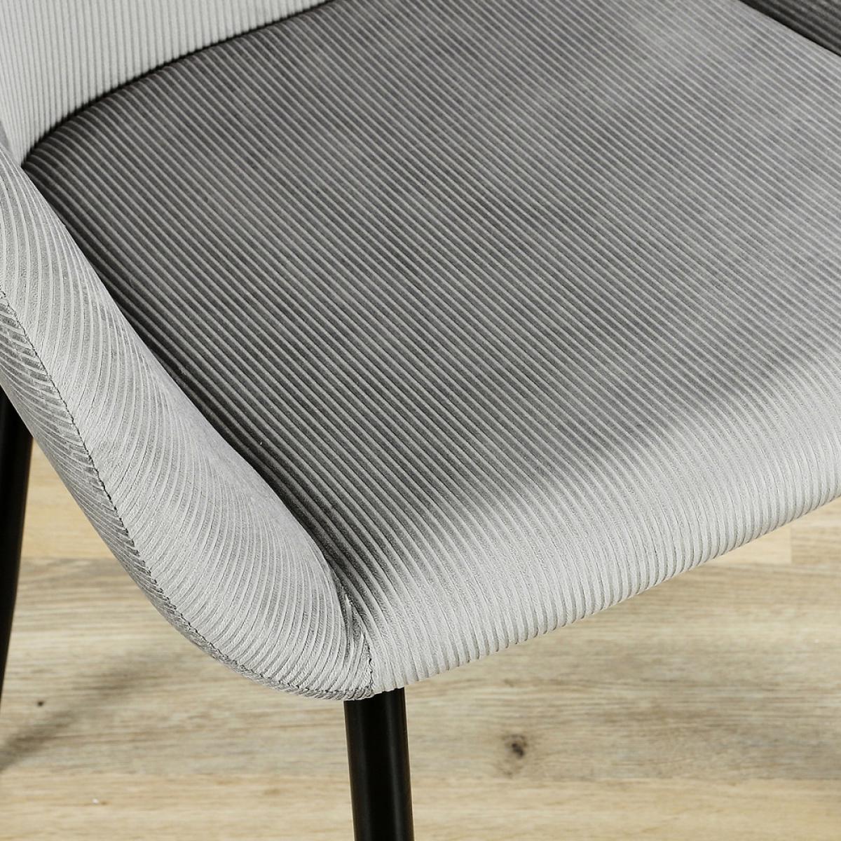 BUTACA GRIS GIULIA Siéntate con estilo en esta SET 2 SILLAS butaca Giulia de inspiración escandinava. Su elegante tapizado de terciopelo contrasta con sus 4 patas de metal para realzar la decoración de tu estancia. Ponte cómodo, ¡éxito garantizado! Altura del asiento: 46,5 cm Medidas: 59x55,7 cm; h.85 cm