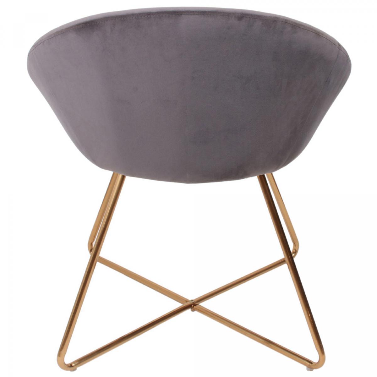 SILLA-BUTACA GRIS C/PATAS METAL Silla- butaca de estilo chic con tapizado efecto terciopelo. De lineas depuradas, con patas metálicas. Medidas: 58,5x65 cm; h.74 cm. Altura del asiento: 46 cm