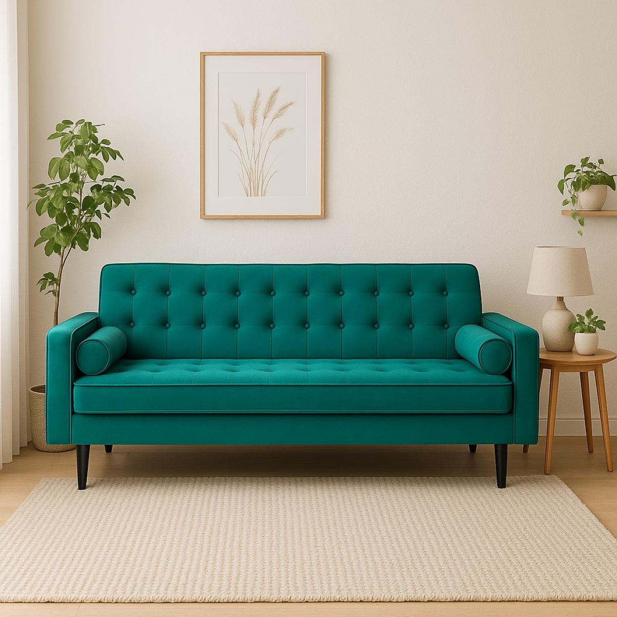 SOFA CAMA 1707/PINK VELVET VERDE PATA NEGRA 3S